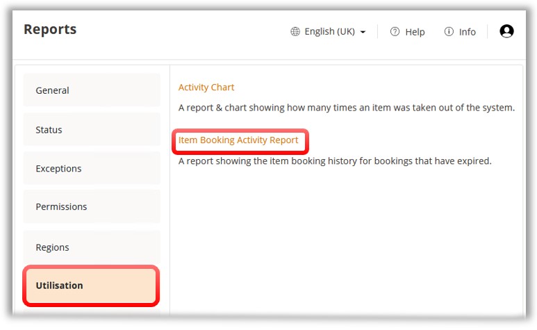 Then locate the Item Booking Activity Report under the Utilisation