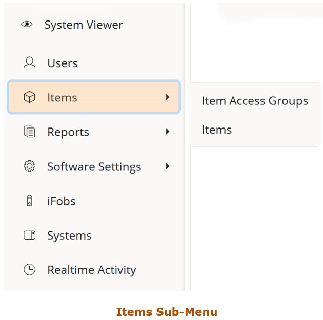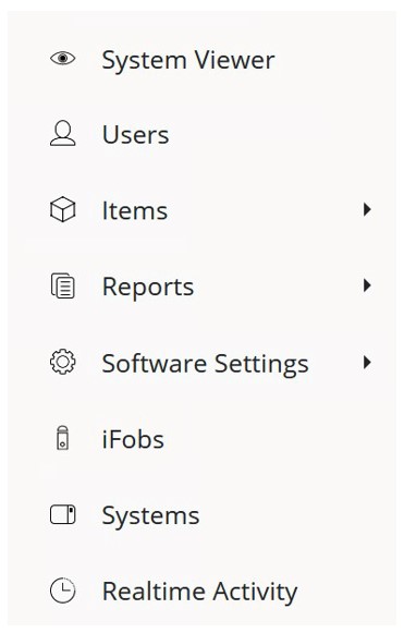 Clicking on these buttons will take you to the corresponding page. However, there are three exceptions to this. Items, Reports and Software Settings have sub-menus that will appear when they have been clicked once.